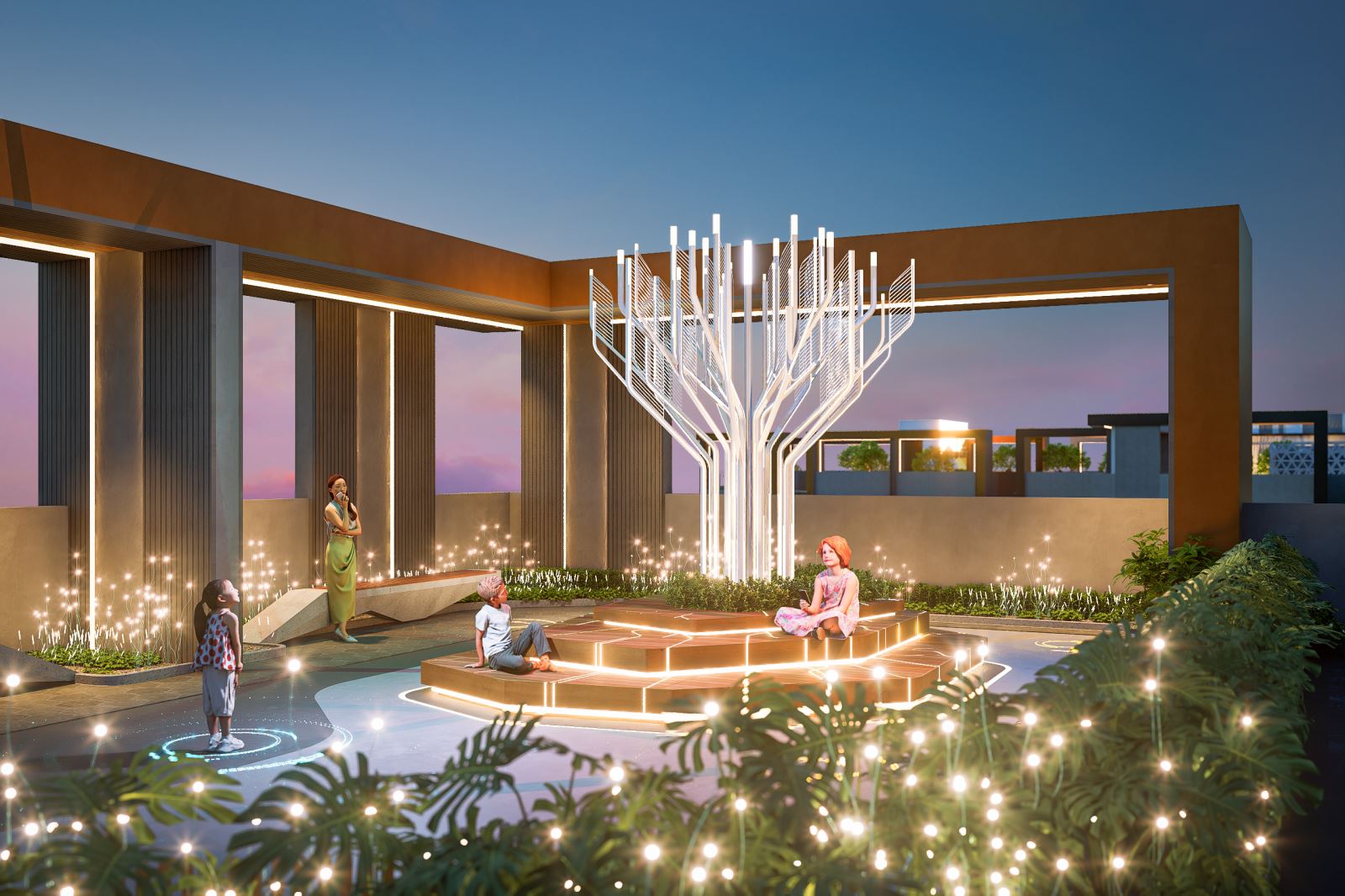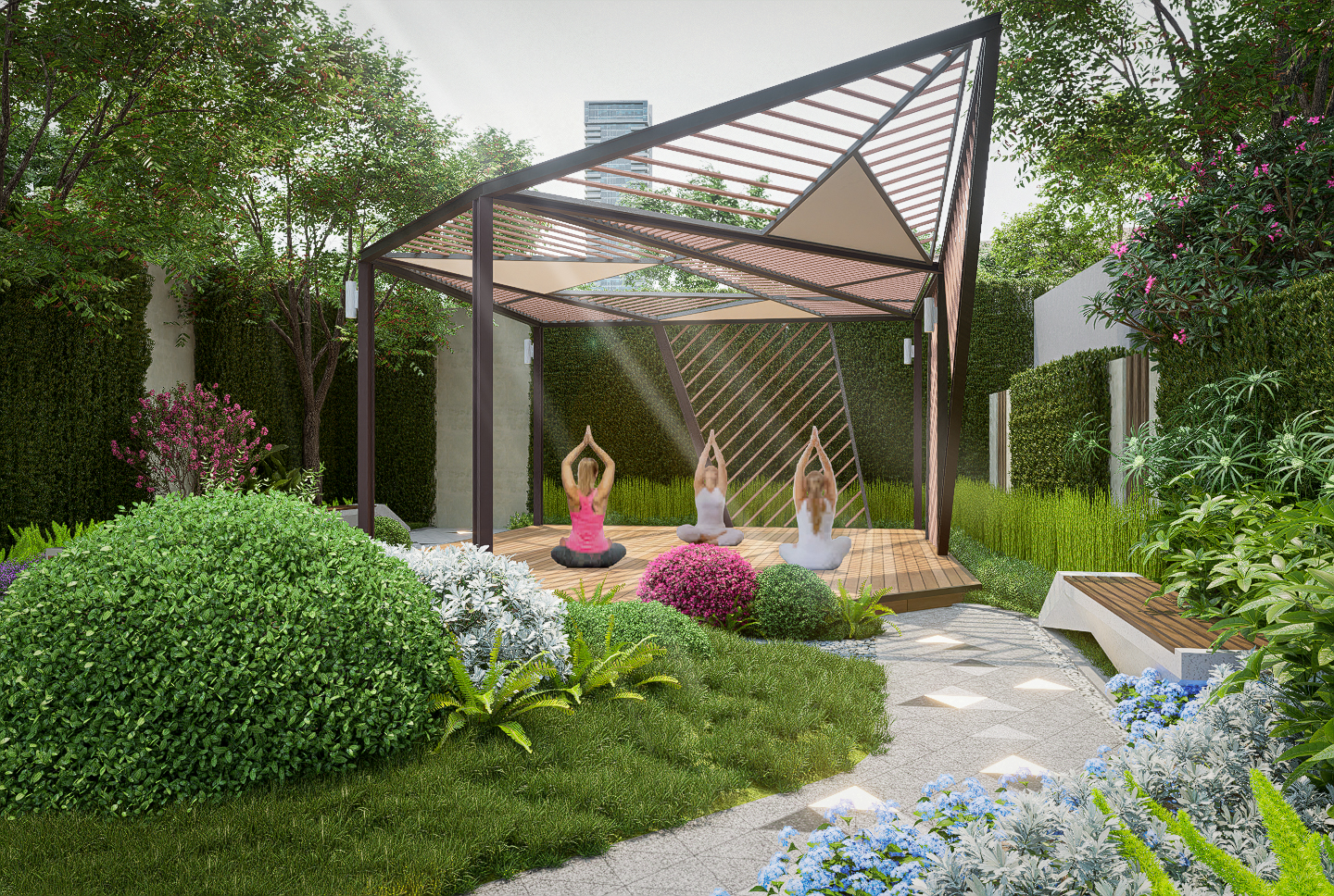 Cảnh quan trên mái nhà nâng khái niệm ốc đảo xanh lên tầm cao mới. Được chia thành bốn khu vực riêng biệt—sức khỏe và phục hồi, cảm xúc, tự nhiên và năng lượng—mái nhà cung cấp không gian để rèn luyện sức khỏe, thư giãn, chiêm nghiệm và tương tác xã hội.