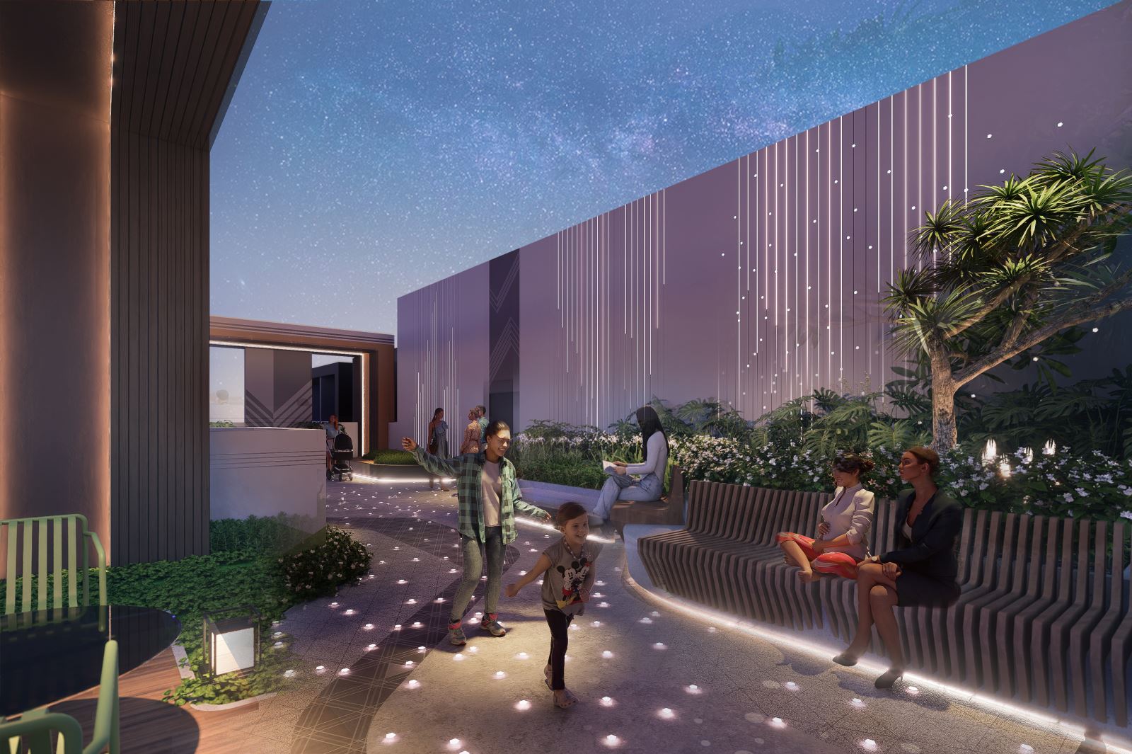 Tầm nhìn của OasisConcept trải rộng trên hai tầng riêng biệt: tầng trệt và tầng thượng. Cảnh quan tầng trệt là một bức tranh ghép các khu chức năng, đáp ứng nhu cầu đa dạng của cư dân. Từ khu thương mại chào đón với rạp chiếu phim ngoài trời đến khu hoạt động ngoài trời sôi động với các khu vực thể thao và vui chơi dưới nước, tầng trệt mang đến một môi trường năng động và hấp dẫn.