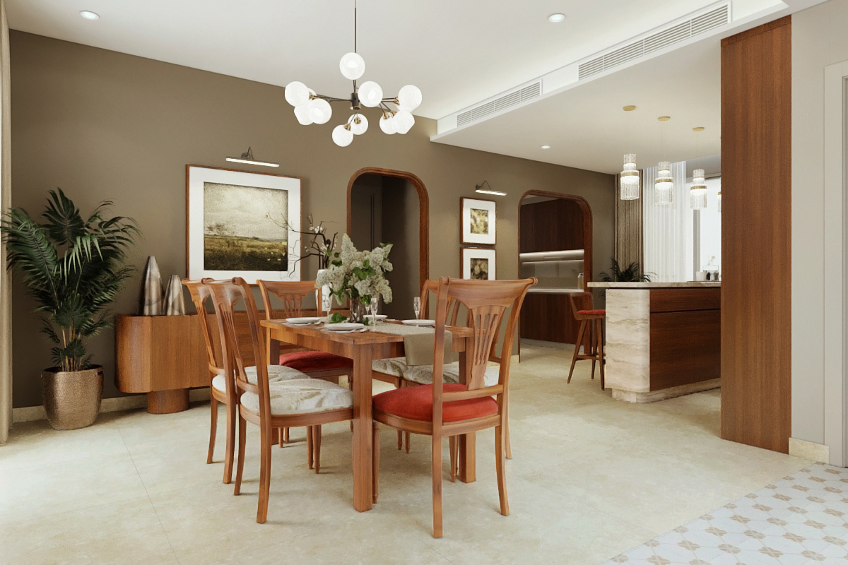 Một bộ sưu tập được tuyển chọn kỹ lưỡng các loại cây trồng trong nhà ít cần chăm sóc, được lựa chọn vì khả năng phát triển mạnh trong khí hậu Việt Nam, tô điểm cho mọi góc của căn hộ. Những loại cây này không chỉ tăng thêm sự thú vị về mặt thị giác mà còn thanh lọc không khí và tạo cảm giác kết nối với thiên nhiên. Việc sử dụng các vật liệu tự nhiên như gỗ, đá và tre trong đồ nội thất, sàn nhà và điểm nhấn trên tường tạo thêm sự ấm áp, kết cấu và kết nối xúc giác với thế giới tự nhiên. Các họa tiết và kết cấu thân thiện với sinh vật, gợi nhớ đến lá cây, hoa hoặc gợn sóng nước, được kết hợp tinh tế vào giấy dán tường, vải và tác phẩm nghệ thuật, tạo ra sự kết nối trực quan với thiên nhiên ngay cả trong những không gian có ít yếu tố tự nhiên.